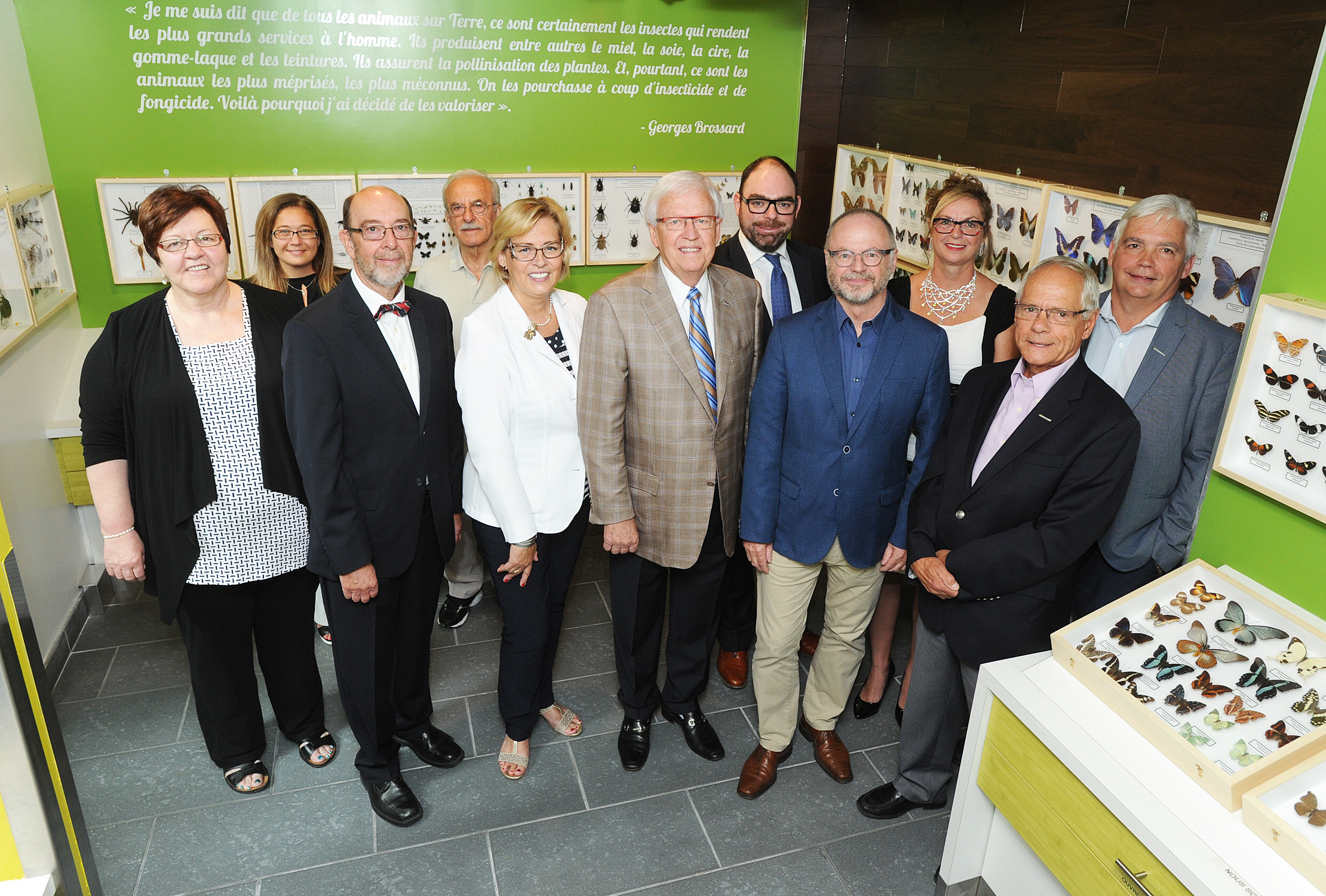 Francine Raymond, conseillère municipale (secteurs A-B), Doreen Assaad, conseillère municipale (secteurs J-L-N-X-Y), Jacques-André Chartrand, président des Amis de la Bibliothèque, Antoine Assaf, conseiller municipal (secteur R), Suzanne Payette, directrice de la Bibliothèque, Paul Leduc, maire de Brossard, Alexandre Plante, conseiller municipal (secteur S), Philippe Bouvry et Marie-Anne Bouvry, fils et fille de Georges Bouvry, Serge Séguin, conseiller municipal (secteurs P-V) et Daniel Lucier, conseiller municipal (secteurs M-N).